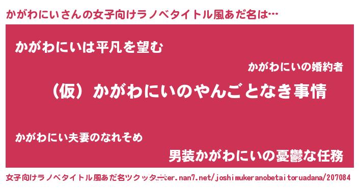 男性向けラノベタイトル風あだ名 | 『かがわにいの憂鬱』 |