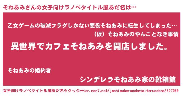 | 男性向けラノベタイトル風あだ名 | 『誰もが恐れるあのそねあみが、ぼくの専属メイドになるようです。』 |
