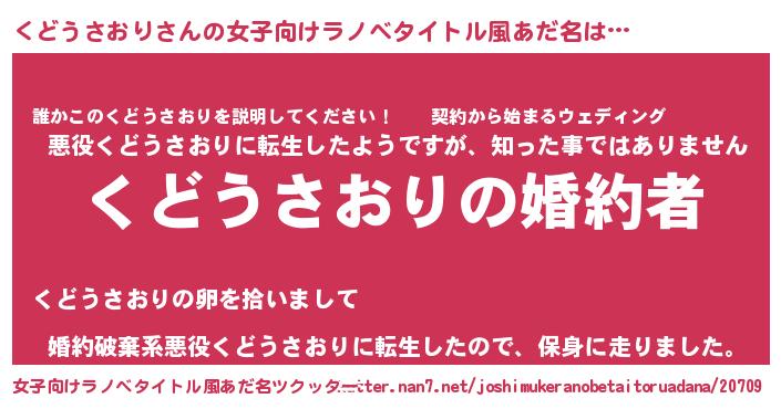 | 胡散臭い通販商品みたいなあだ名 | 『運命の人と巡り会える高級そうな壺…その名も「くどうさおり」』 |