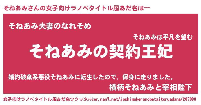| 男性向けラノベタイトル風あだ名 | 『そねあみという概念が存在しない退屈な世界 』 |