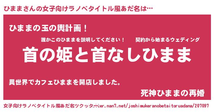 | 男性向けラノベタイトル風あだ名 | 『はたらくひままさま!』 |