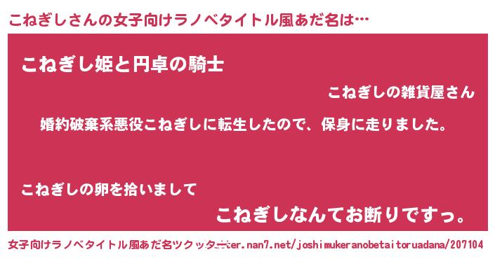 意味不明あだ名 | 『たけのこ科こねぎし属』『自称こねぎし』 |