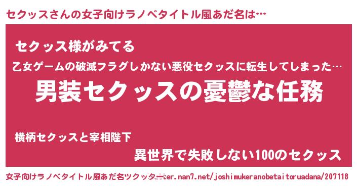 男性向けラノベタイトル風あだ名 | 『うちのセクッスが世界を掌握している!』 |