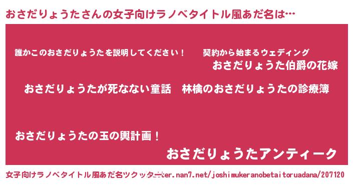 | 意味不明あだ名 | 『住所不定無職おさだりょうた(74歳)』 |