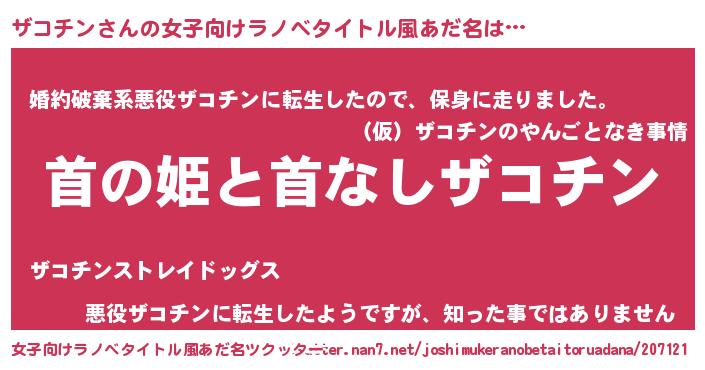 意味不明あだ名 | 『なめこ科ザコチン属』『自称ザコチン』 |