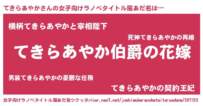 欧米人風あだ名 | 『てきらあやかクリステル』 |