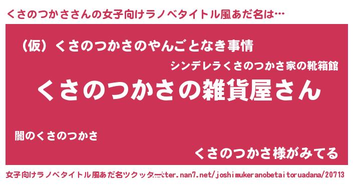 | 意味不明あだ名 | 『くさのつかさフォーエバー』 |