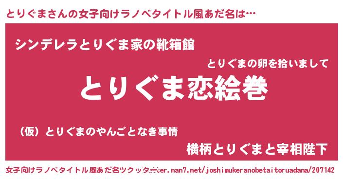 男性向けラノベタイトル風あだ名 | 『おまえをオタクにしてやるから、俺をとりぐまにしてくれ! 』 |