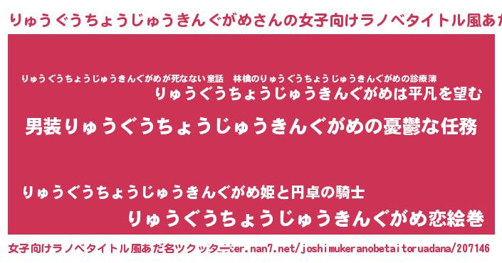胡散臭い通販商品みたいなあだ名 | 『あなたにだけ特別に提供する限定10本のレアな日本酒…その名も「りゅうぐうちょうじゅうきんぐがめ」』 |