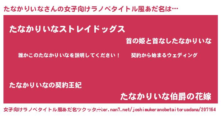 男性向けラノベタイトル風あだ名 | 『タナカリイナアートオンライン』 |