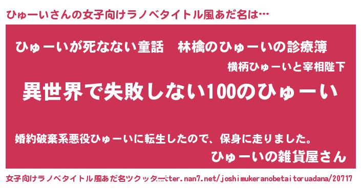 | 意味不明あだ名 | 『永久保存ひゅーい』 |