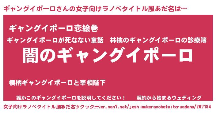男性向けラノベタイトル風あだ名 | 『Re:ギャングイポーロから始める異世界生活』 |