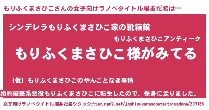 男性向けラノベタイトル風あだ名 | 『もりふくまさひこの嫁は女の子じゃないと思った?』 |