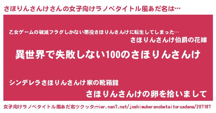 男性向けラノベタイトル風あだ名 | 『さほりんさんけという概念が存在しない退屈な世界 』 |