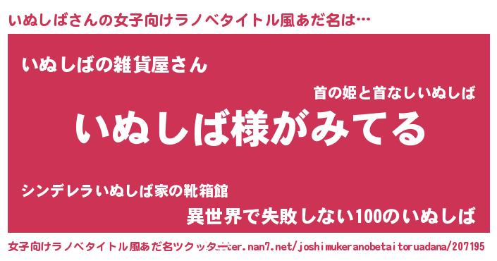 男性向けラノベタイトル風あだ名 | 『いぬしばの嫁は女の子じゃないと思った?』 |