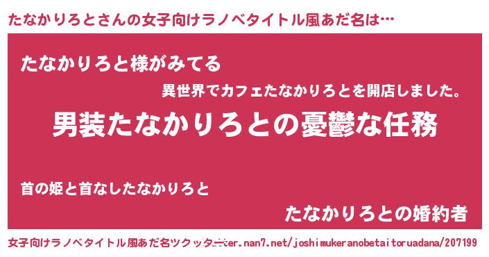 男性向けラノベタイトル風あだ名 | 『うちのたなかりろとが世界を掌握している!』 |