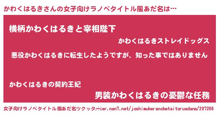 胡散臭い通販商品みたいなあだ名 | 『あなたにだけ特別に提供する世界で10本だけ現存している希少なブランデー…その名も「かわくはるき」』 |