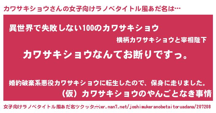 | ヘコむあだ名 | 『カワサキショウ(小並感)』『カワもー』 |