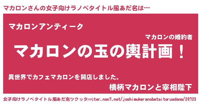 | 胡散臭い通販商品みたいなあだ名 | 『芸能人もオススメする高麗人参…その名も「マカロン」』 |