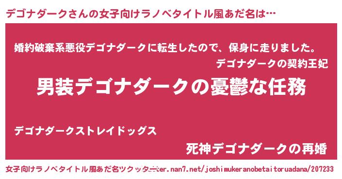 | 男性向けラノベタイトル風あだ名 | 『冴えないデゴナダークの育てかた』 |