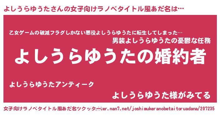 | 胡散臭い通販商品みたいなあだ名 | 『運命の人と巡り会える高級そうな絵画…その名も「よしうらゆうた」』 |