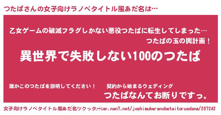 男性向けラノベタイトル風あだ名 | 『つたばという概念が存在しない退屈な世界 』 |