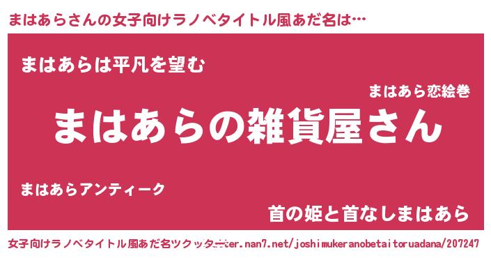 意味不明あだ名 | 『まはあらフォーエバー』『自称まはあら』 |