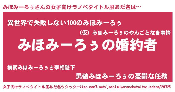 | 胡散臭い通販商品みたいなあだ名 | 『運命の人と巡り会える高級そうな壺…その名も「みほみーろぅ」』 |