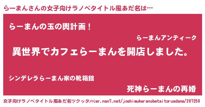 ヘコむあだ名 | 『らーまん(笑)』『らーにー』 |