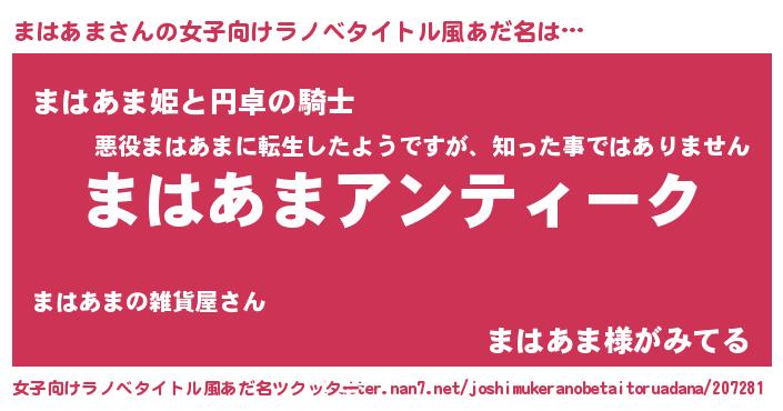 男性向けラノベタイトル風あだ名 | 『魔法科高校のまはあま』 |