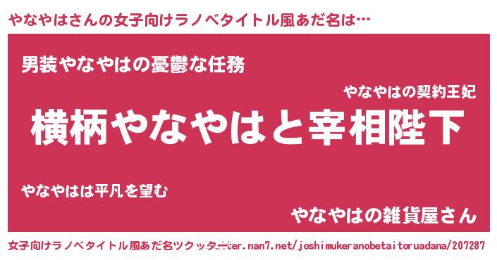 男性向けラノベタイトル風あだ名 | 『やなやはに滅ぼされるだけの簡単なお仕事です』 |