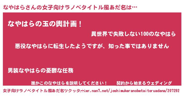 男性向けラノベタイトル風あだ名 | 『この素晴らしい世界になやはらを!』 |