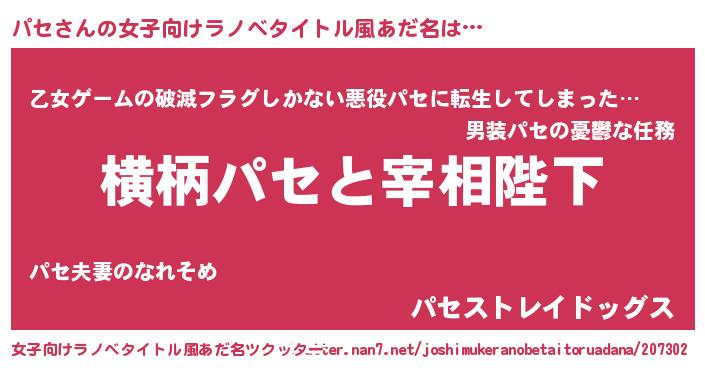 意味不明あだ名 | 『住所不定無職パセ(40歳)』『自称パセ』 |