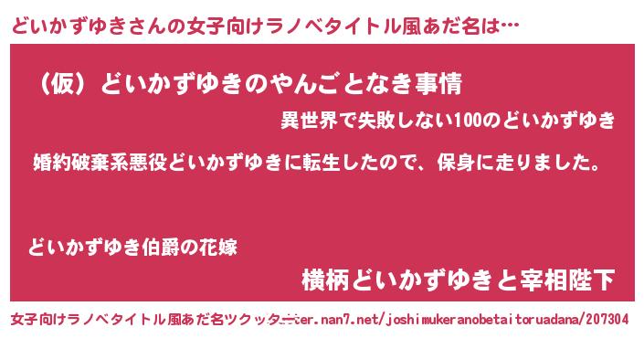 男性向けラノベタイトル風あだ名 | 『ドイカズユキスレイヤー』 |