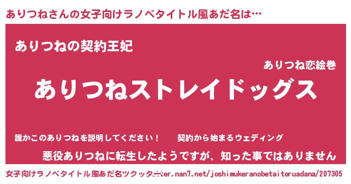 可愛いあだ名 | 『ありうちぇる』『ありつねママ』 |