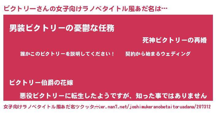 男性向けラノベタイトル風あだ名 | 『ビクトリーアートオンライン』 |