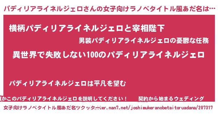 | ヒーロー風カッコイイあだ名 | 『ネオパディリアライネルジェロ』 |