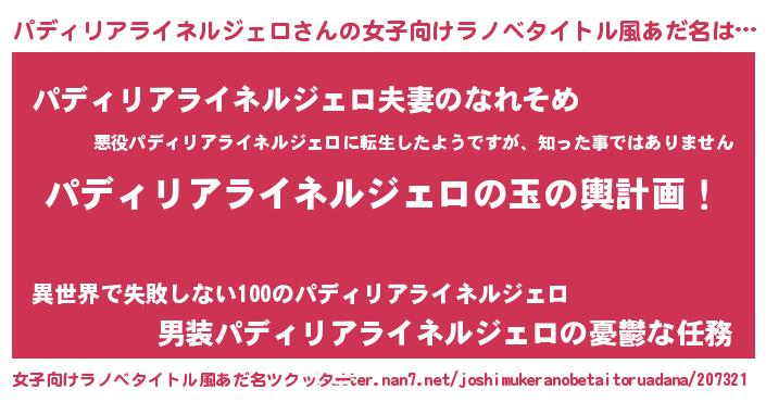 | ヒーロー風カッコイイあだ名 | 『慈愛の使者パディリアライネルジェロ』 |