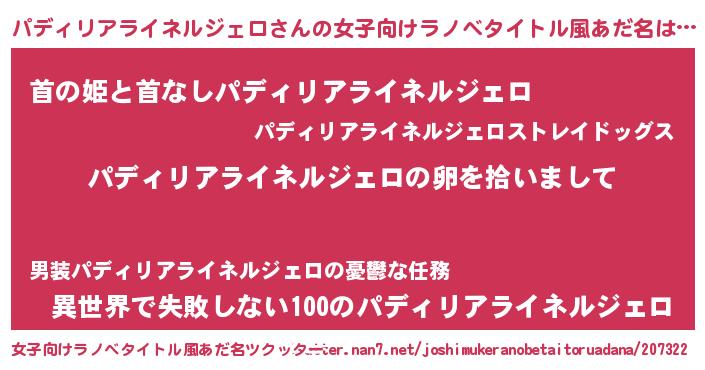 | 男性向けラノベタイトル風あだ名 | 『ダンジョンにパディリアライネルジェロを求めるのは間違っているだろうか』 |