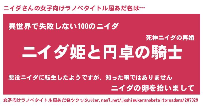 | 男性向けラノベタイトル風あだ名 | 『ニイダの憂鬱』 |