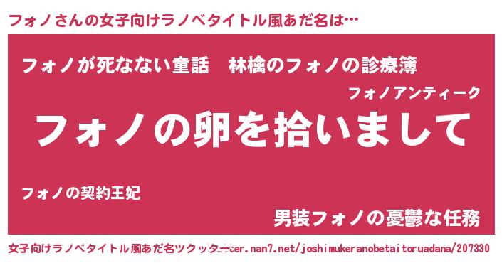 | ヘコむあだ名 | 『フォぷりん』『フォノ(遠い目)』 |