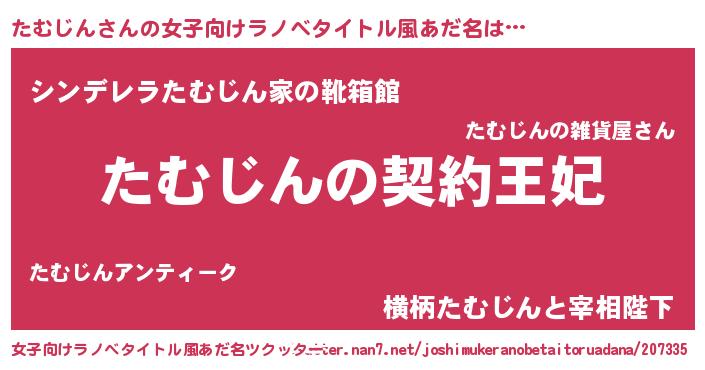 男性向けラノベタイトル風あだ名 | 『誰もが恐れるあのたむじんが、ぼくの専属メイドになるようです。』 |