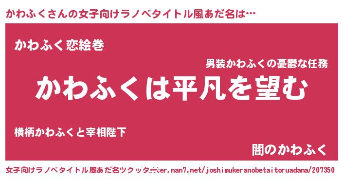 | 男性向けラノベタイトル風あだ名 | 『ダンジョンにかわふくを求めるのは間違っているだろうか』 |