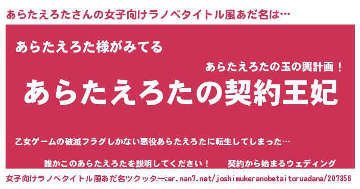| 意味不明あだ名 | 『永久保存あらたえろた』 |