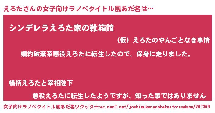 | 男性向けラノベタイトル風あだ名 | 『エロタスレイヤー』『緋弾のエロタ』 |
