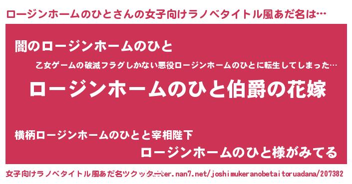 | 意味不明あだ名 | 『ロージンホームのひとフォーエバー』 |