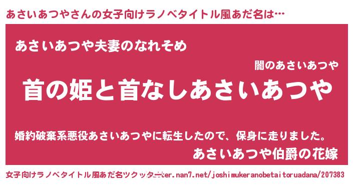 男性向けラノベタイトル風あだ名 | 『はたらくあさいあつやさま!』 |