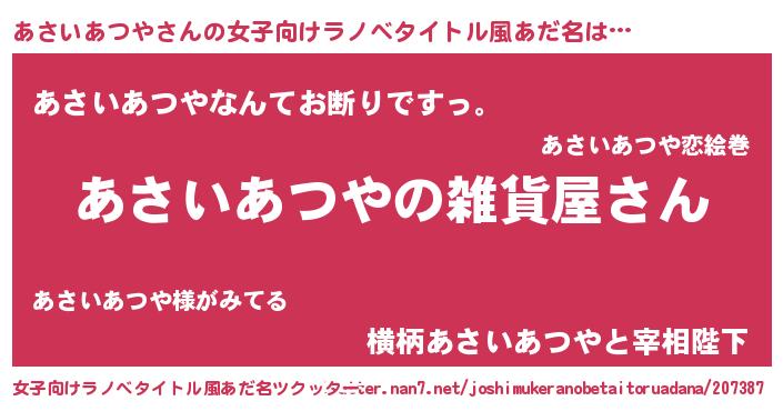 ファンタジー風あだ名 | 『エターナルアサイアツヤー』 |