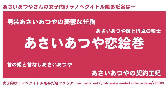 ヘコむあだ名 | 『あさいあつや(笑)』『あさにゅー』 |