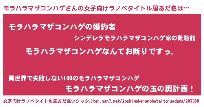 | 胡散臭い通販商品みたいなあだ名 | 『ガンによく効くアガリクス…その名も「モラハラマザコンハゲ」』 |